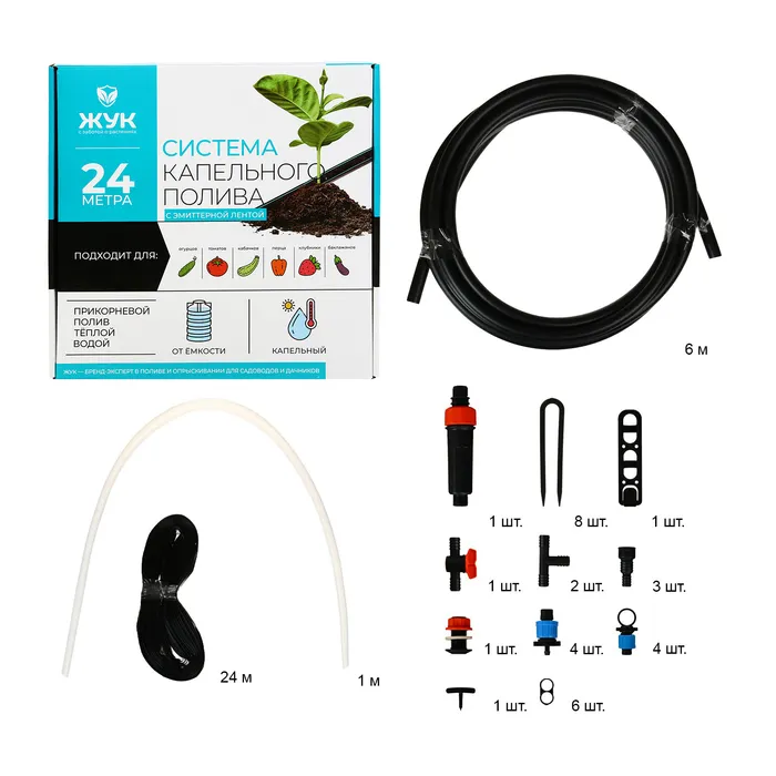 Набор для капельного полива от ёмкости, с эмиттерной лентой 24 м, «Жук» — Характеристики