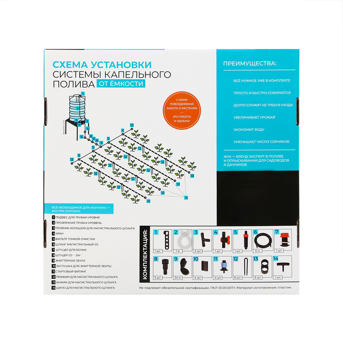 Набор для капельного полива от ёмкости, на 60 растений, «Жук»