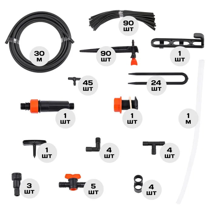 Набор для капельного полива от ёмкости, с регулируемыми капельницами, на 90 растений, «Жук» — Характеристики