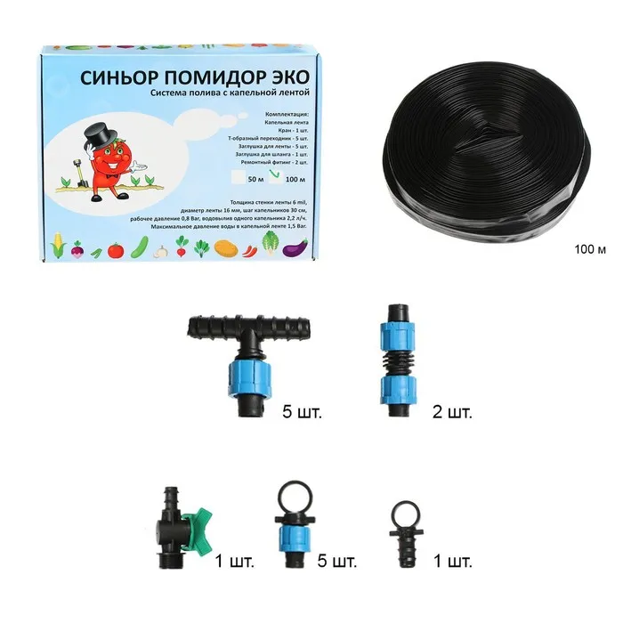 Набор для капельного полива, с капельной лентой 100 м, «Синьор Помидор», ЭКО — Характеристики