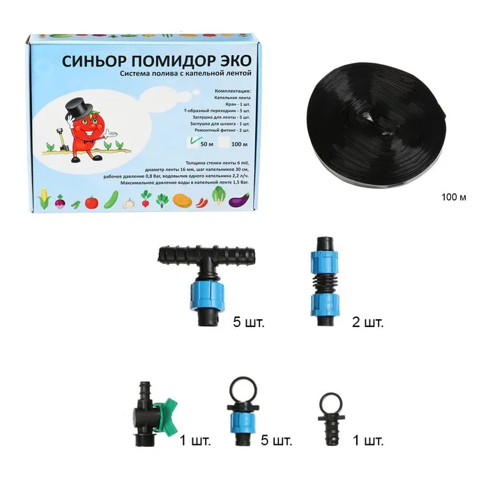 Набор для капельного полива, с капельной лентой 50 м, «Синьор Помидор», ЭКО — Характеристики