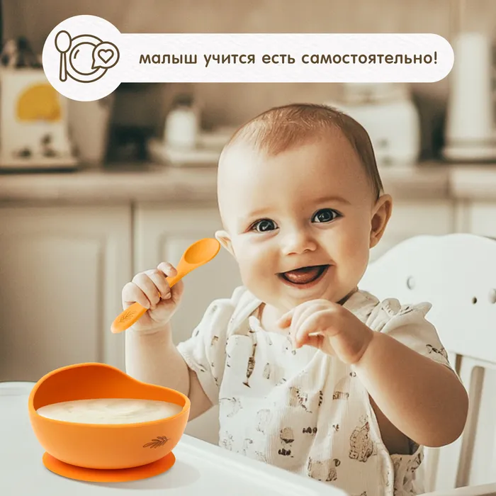 Набор для кормления, пищевой силикон, цвет оранжевый — Характеристики