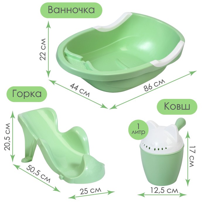 Набор для купания детский: ванночка 86 см, горка, ковш -лейка, голубой