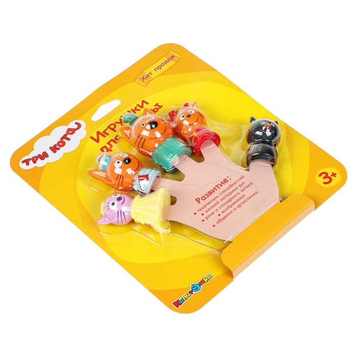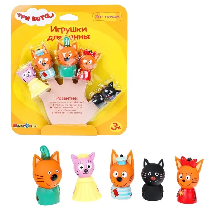 Набор для купания «Три Кота: Пальчиковый театр», 5 фигурок, на картоне, в коробке — Характеристики