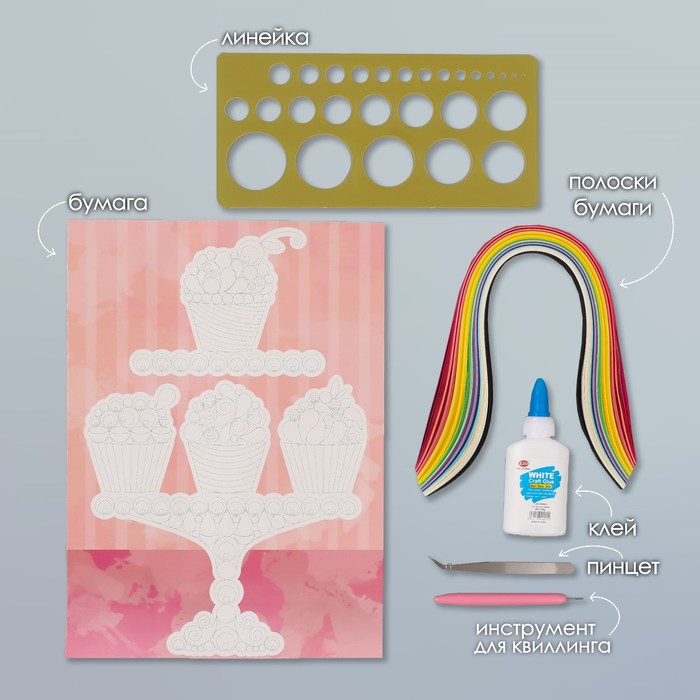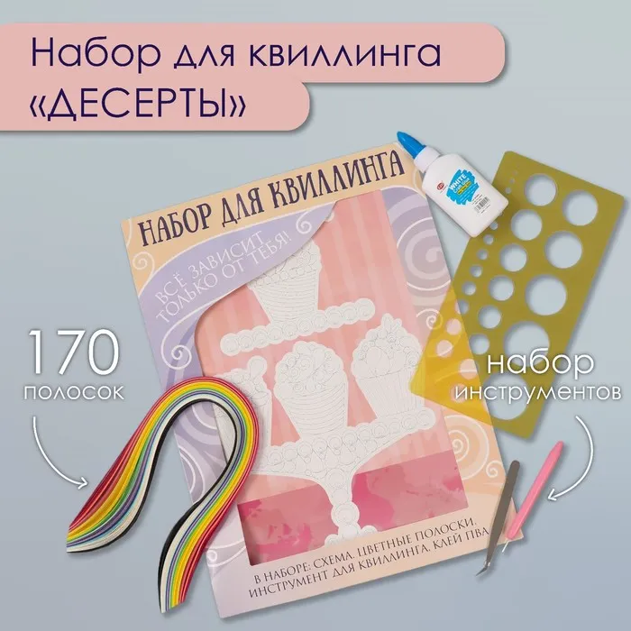 Набор для квиллинга 170 полосок с инструментами «Десерты», 25×33.7 см — Характеристики