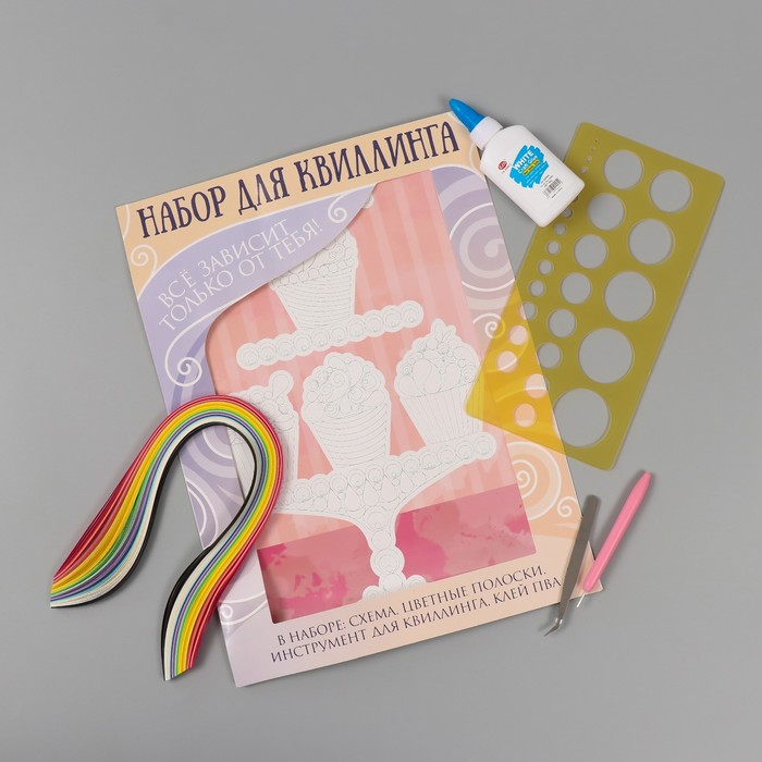 Набор для квиллинга (клей ПВА, инструмент для квиллинга, 160 полосок 0.5 см), МИКС