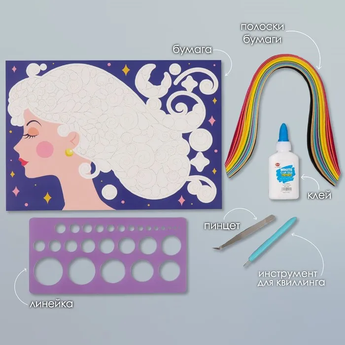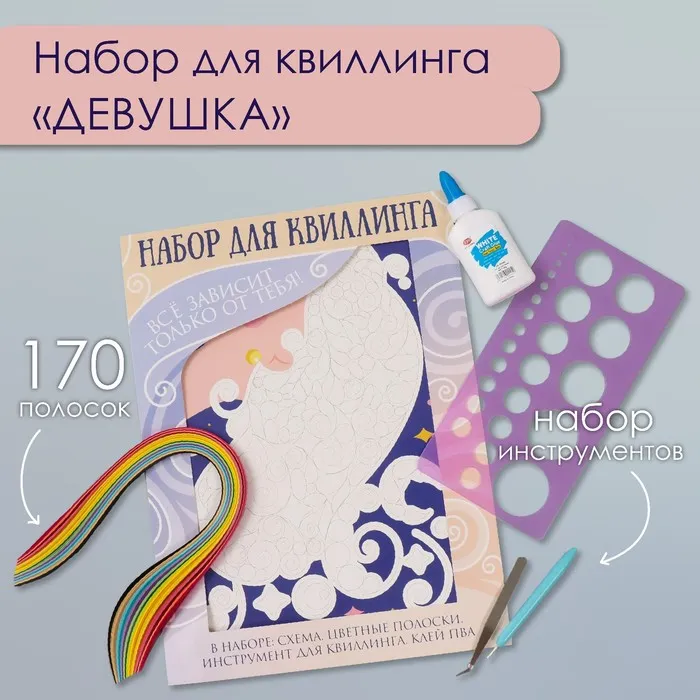 Набор для квиллинга 170 полосок с инструментами «Девушка», 25×33.7 см — Характеристики