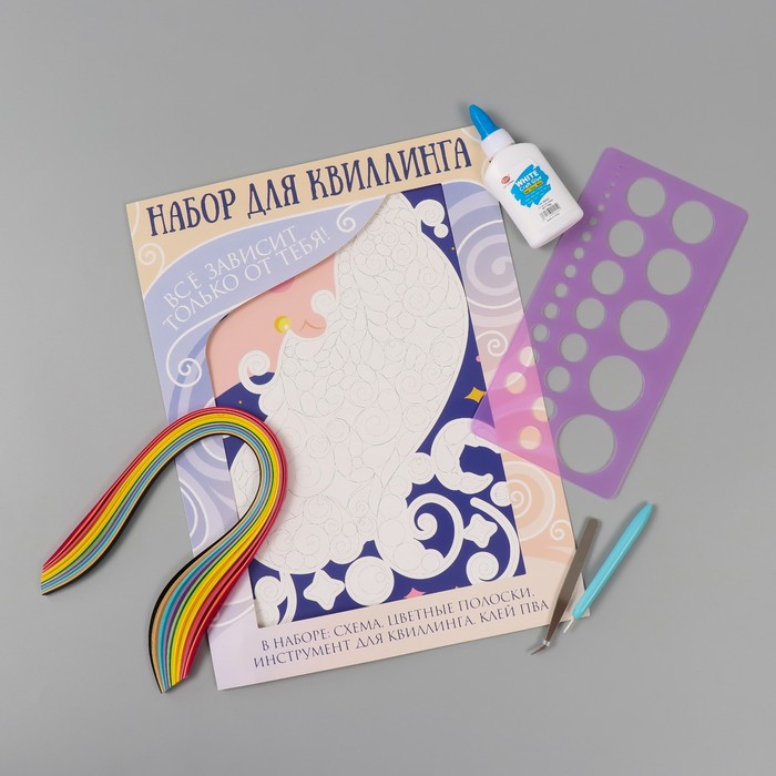 Набор инструментов для квиллинга (170 пол.0.5 см, клей, иголки, линейка, пинцет, ин.д/кв.) 21×30 см