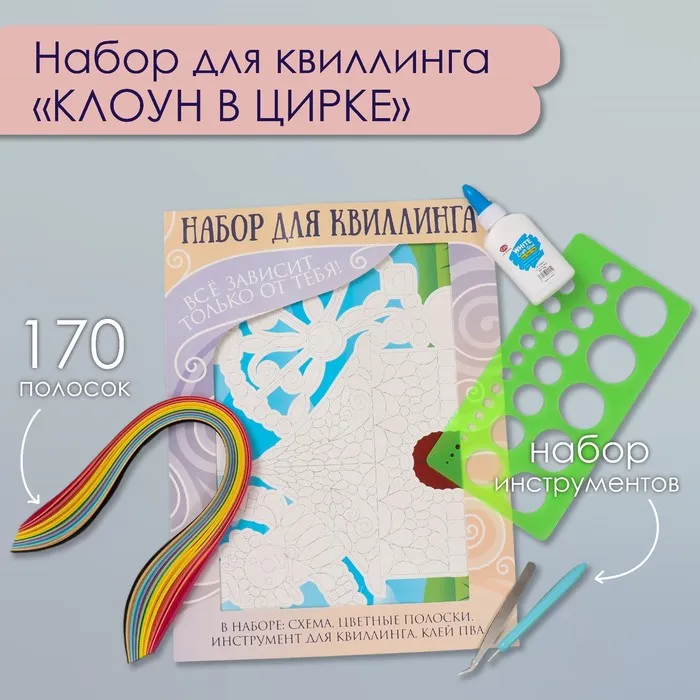 Набор для квиллинга 170 полосок с инструментами «Клоун в цирке», 25×33.7 см — Характеристики