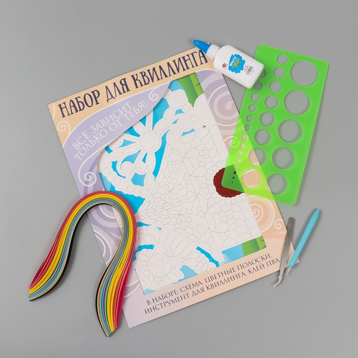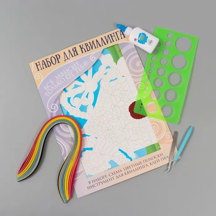 Набор инструментов для квиллинга (170 пол.0.5 см, клей, иголки, линейка, пинцет, ин.д/кв.) 21×30 см
