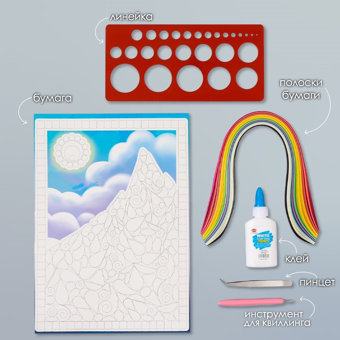 Набор для квиллинга 170 полосок с инструментами «Восход солнца в горах», 25×33.7 см — Характеристики