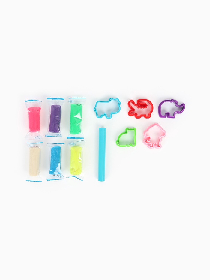В наборе ребёнок найдет тесто - пластилин, формочки и скалку.