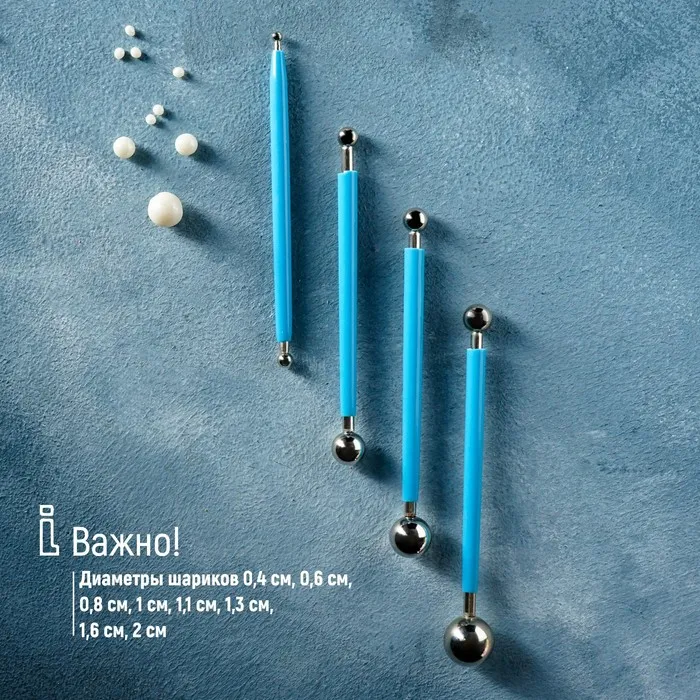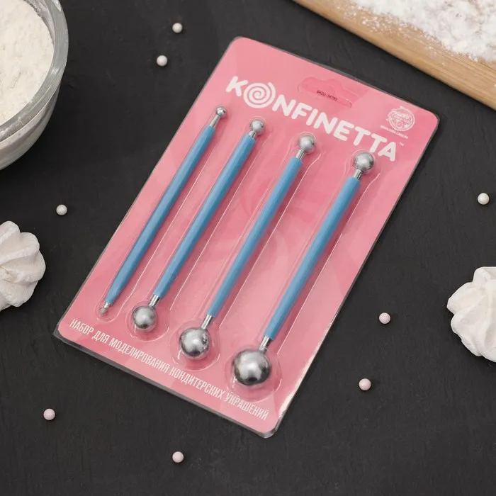 Набор для моделирования кондитерских украшений KONFINETTA, 4 шт., диаметры шариков 0.4 см, 0.6 см, 0.8 см, 1 см, 1.1 см, 1.3 см, 1.6 см, 2 см — Характеристики