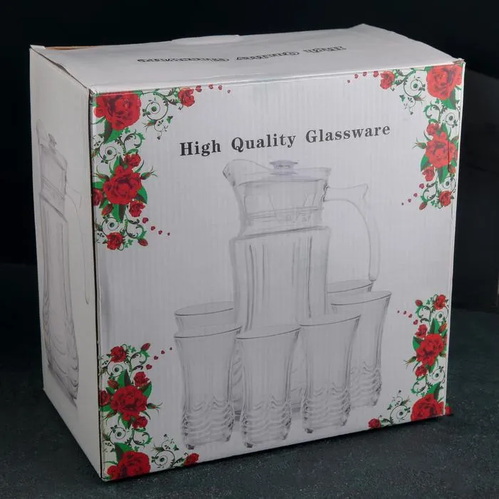 Набор питьевой состоит из стеклянного кувшина и стаканов. Такой набор пригодится для повседневного использования и праздничной сервировки.