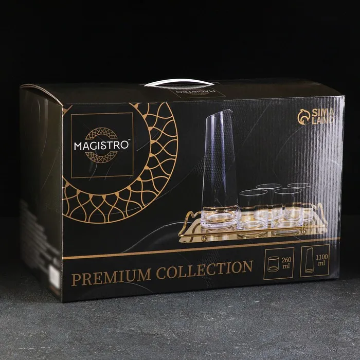 Набор для напитков Magistro «Гармония», 6 предметов: кувшин 1.1 л, 4 бокала 260 мл, поднос, стекло — Характеристики