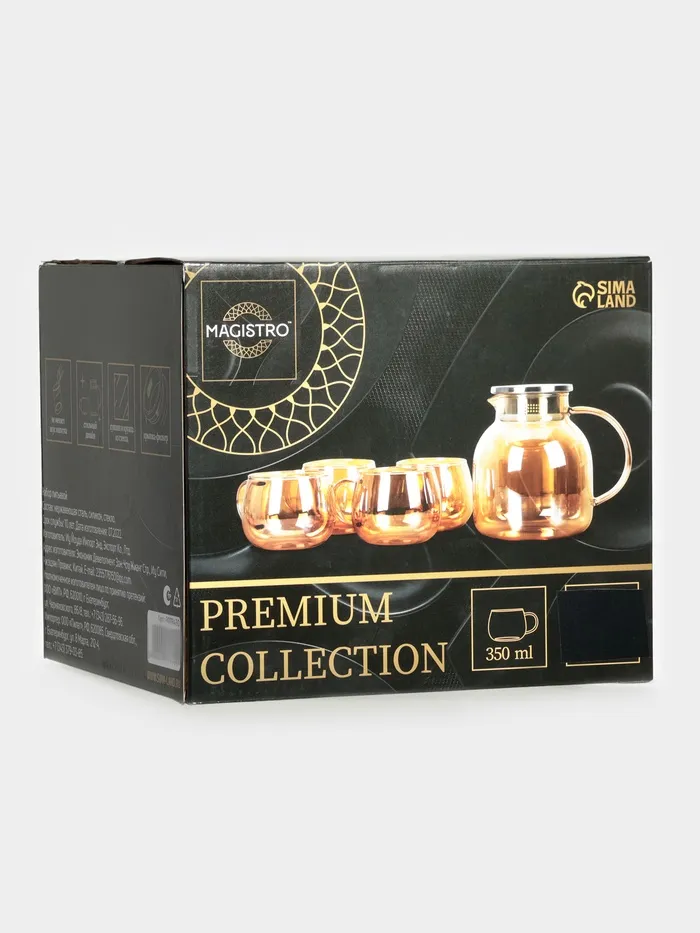 Набор для напитков Magistro «Голден», 5 предметов: кувшин 1 л, 4 кружки 350 мл, стекло, золотистый — Характеристики