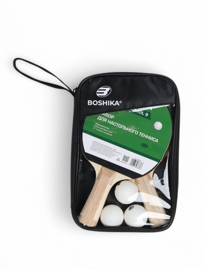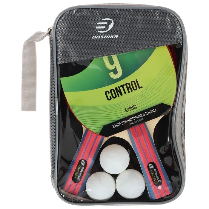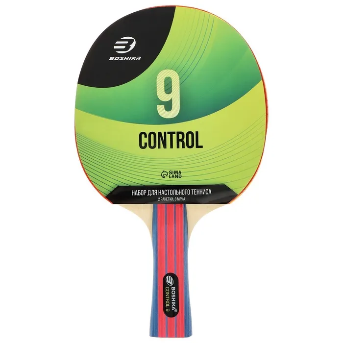 Набор для настольного тенниса BOSHIKA Control 9: 2 ракетки, 3 мяча, губка 1.8 мм, коническая ручка — Характеристики