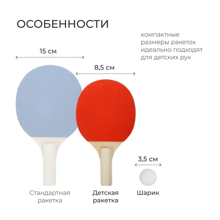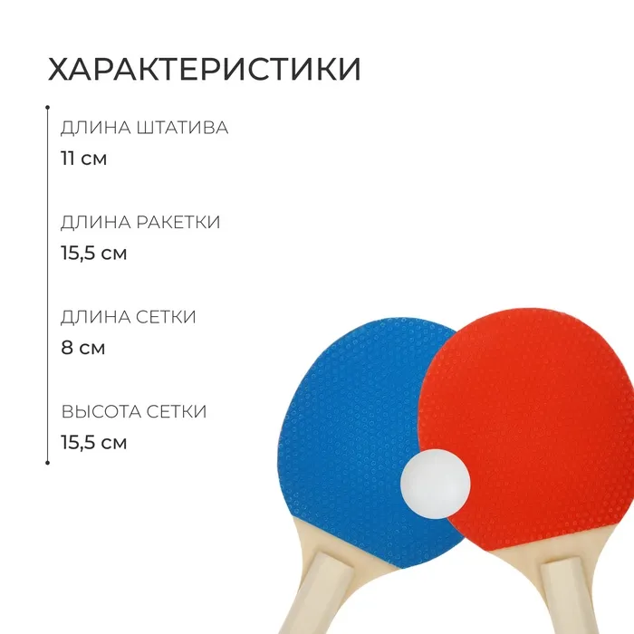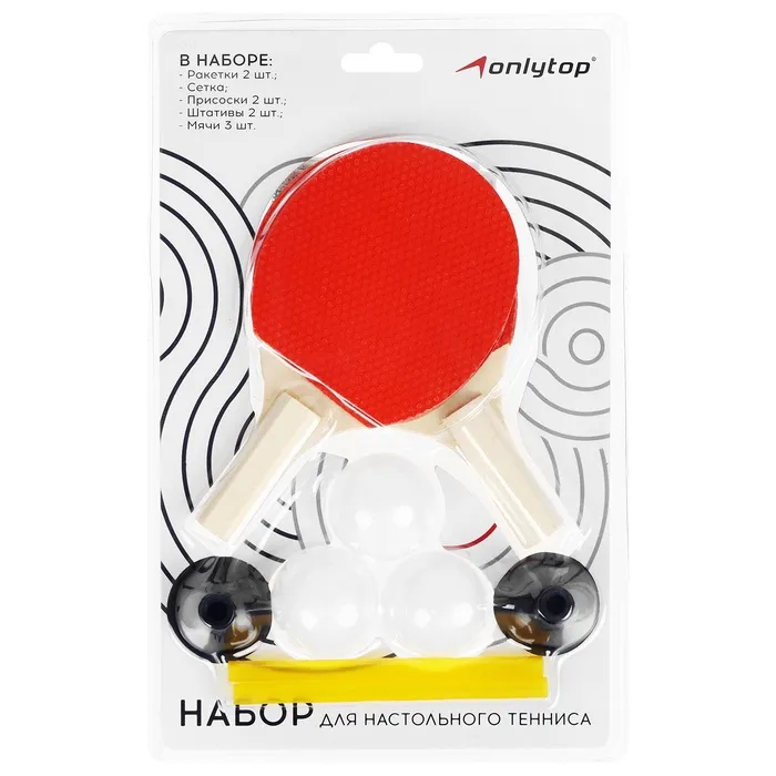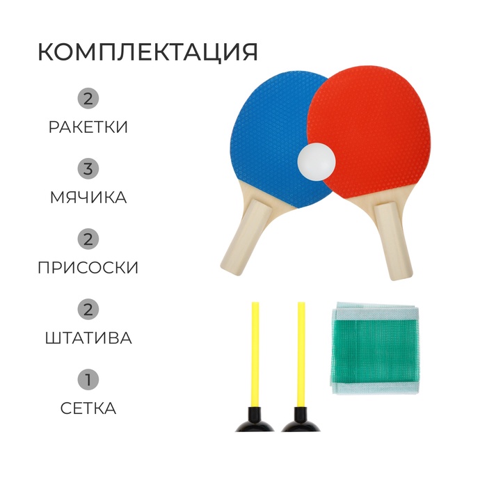 Набор для настольного тенниса детский ONLYTOP: 2 ракетки, 3 мячика, сетка, присоски 2 шт.,штатив 2 шт. — Характеристики