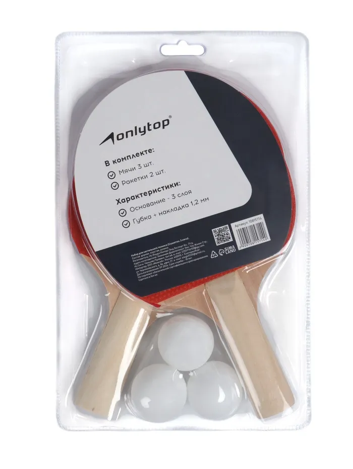 Набор для настольного тенниса ONLYTOP, 2 ракетки, 3 мяча — Характеристики
