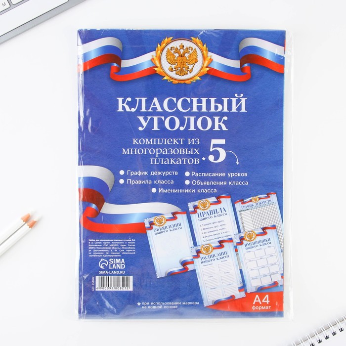 Набор для оформления классного уголка «Учителю: Россия с гербом», формат А4, 5 листов — Характеристики