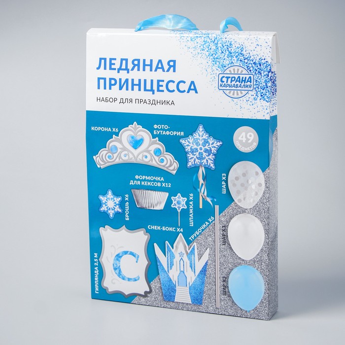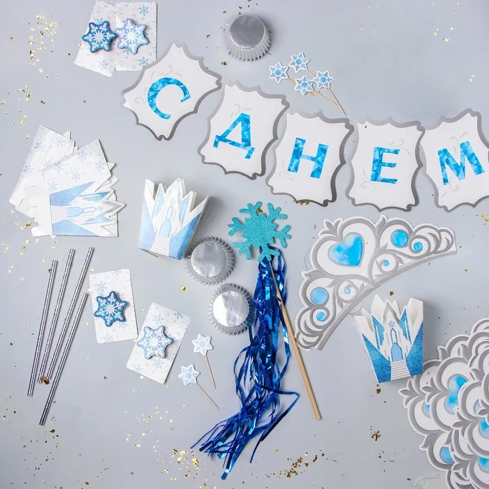 Набор для оформления праздника «Ледяная принцесса», воздушные шары, гирлянда, брошь, формочки, бутафория — Характеристики