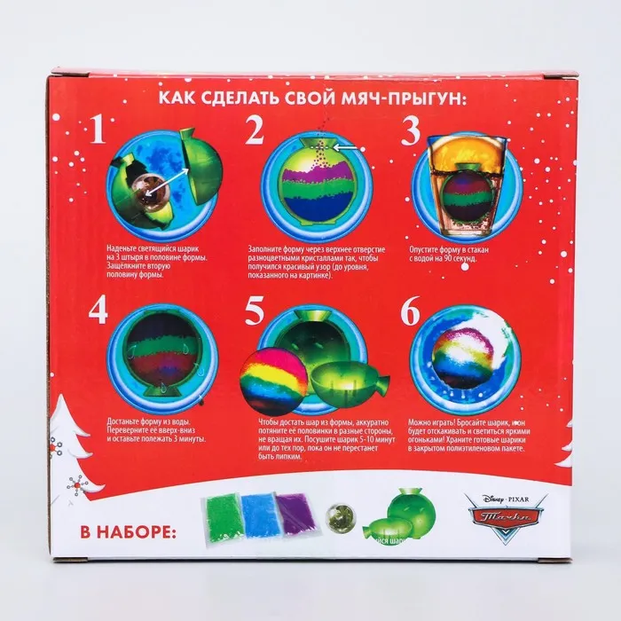 Набор для опытов, 1 форма, 3 цвета «Прыгающий мяч светящийся» Тачки — Характеристики