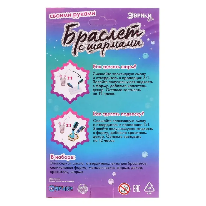Набор для опытов «Браслет с шармами» ребёнок проведёт увлекательный эксперимент и создаст уникальное украшение из эпоксидной смолы!
