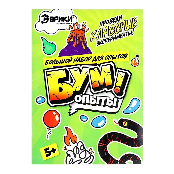 С набором для опытов «Эврики» ребёнок почувствует себя настоящим химиком-изобретателем и проведёт 7 увлекательных «взрывных» экспериментов!