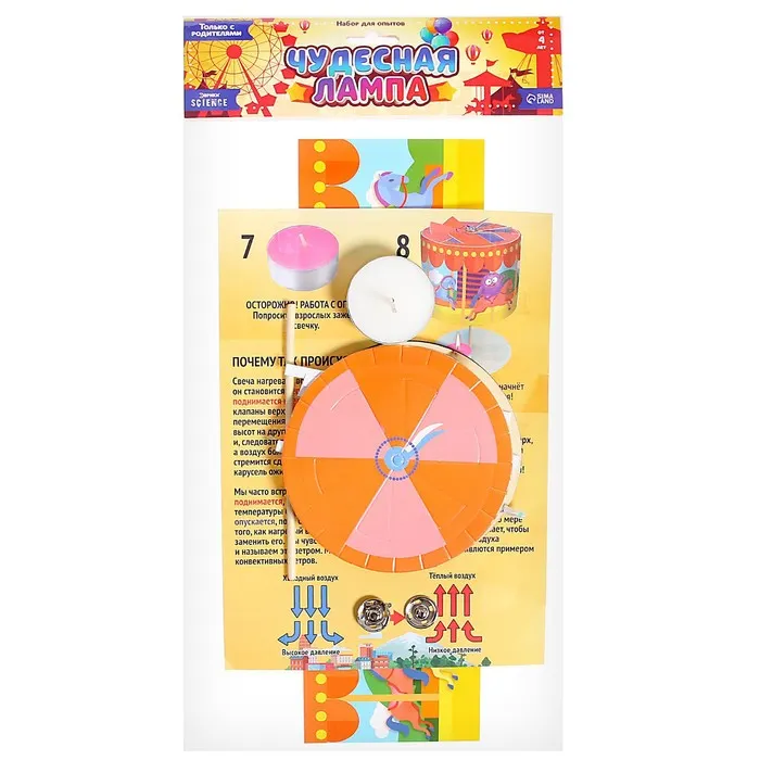 Набор для опытов по физике «Чудесная лампа» погрузит ребёнка в увлекательный мир научных исследований. Юный учёный проведёт эксперимент, который поможет ему лучше понять физические законы и понаблюдает, как движется тёплый и холодный воздух!