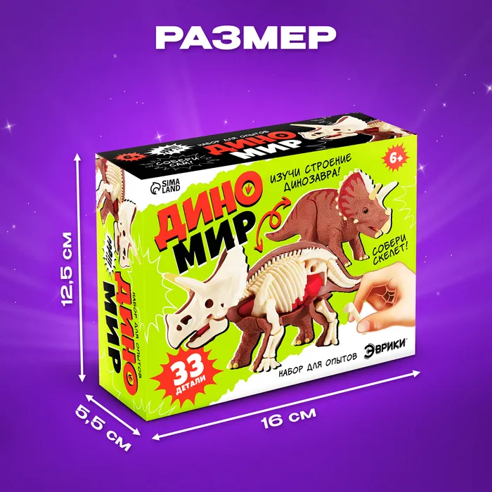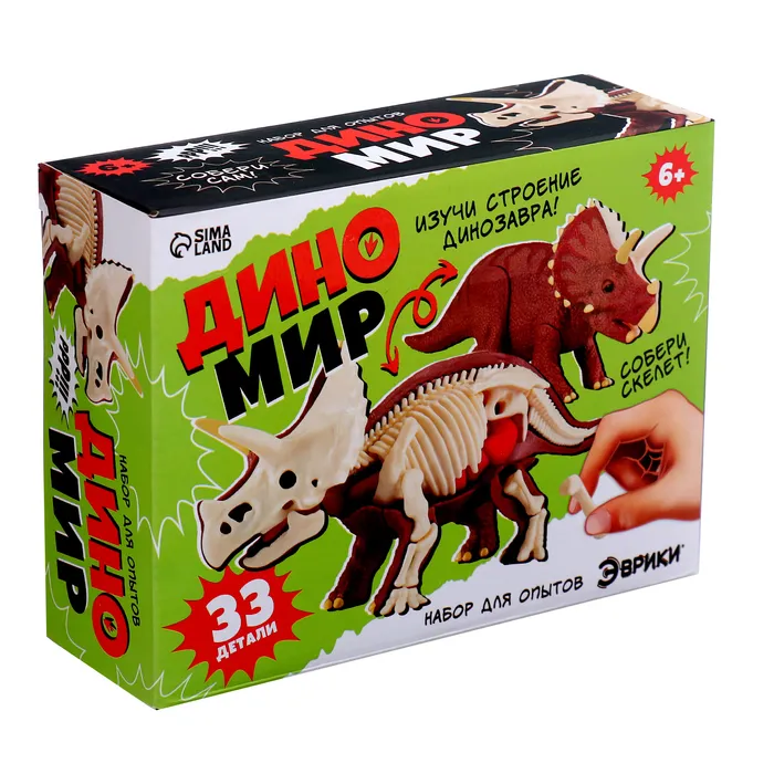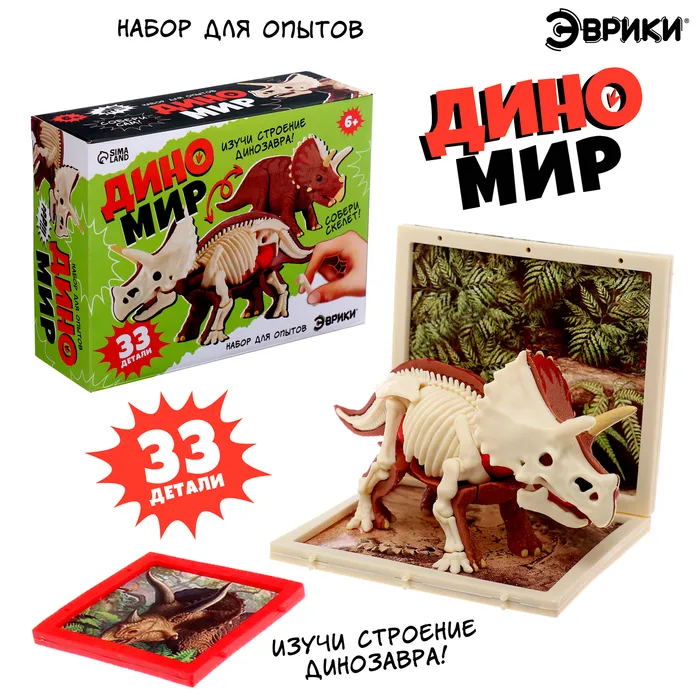 Набор для опытов «Диномир: Трицератопс», строение тела динозавра, 33 детали — Характеристики