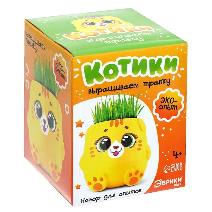 Набор для опытов, для детей «Котики. Выращиваем травку», растение в жёлтом горшочке — Характеристики