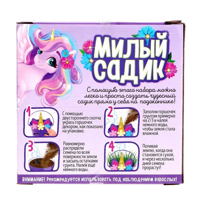 Набор для опытов, для детей «Милый садик», растение в горшочке «Единорог» — Характеристики