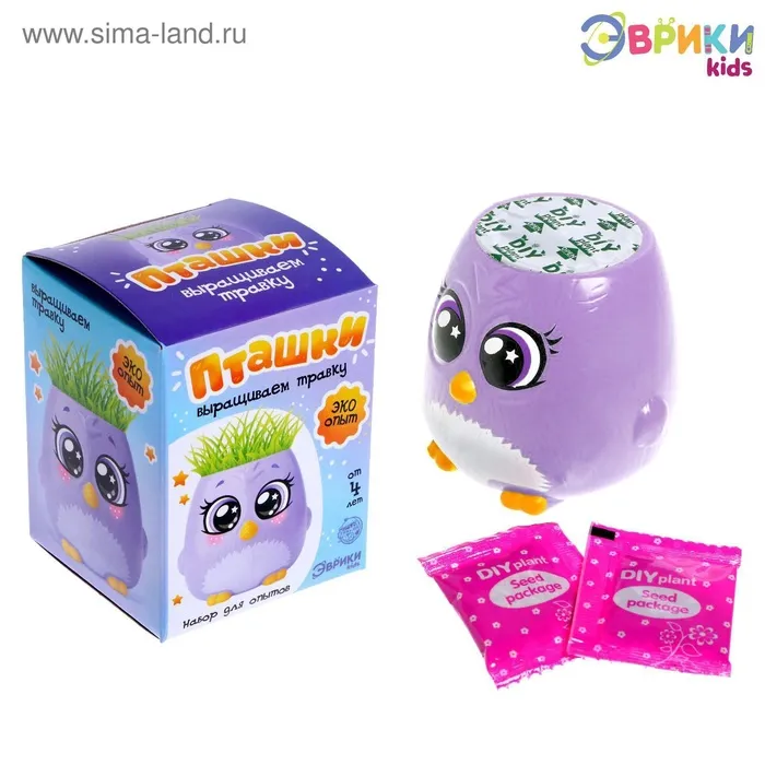 Набор для опытов, для детей «Пташки, выращиваем травку», растение в фиолетовом горшочке — Характеристики