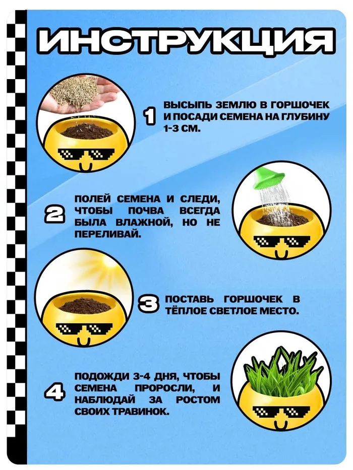 Набор для опытов, для детей «Выращиваем травку», растение в горшочке - эмодзи «Крутой» — Характеристики