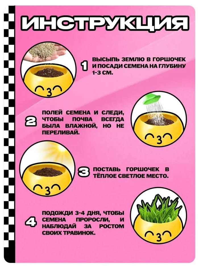 Набор для опытов, для детей «Выращиваем травку», растение в горшочке - эмодзи «Поцелуйчик» — Характеристики