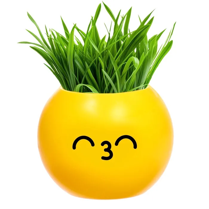 • Горшочек в форме весёлого эмодзи с забавным дизайном.