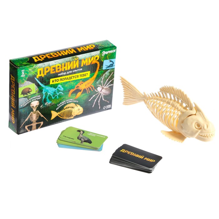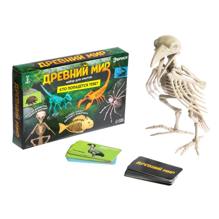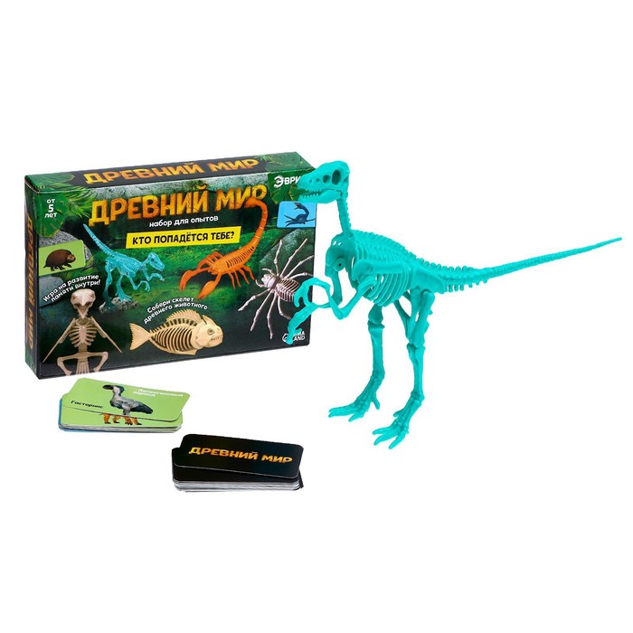 Набор для опытов «Эврики» поможет изучить строение обитателей древнего мира. Ребёнок соберёт скелет одного из животных: