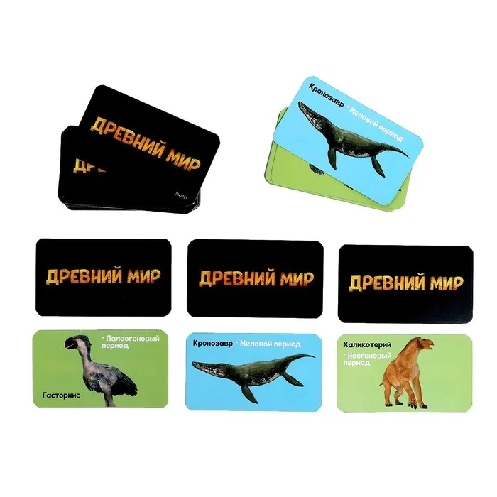 В комплект входит развивающая игра, которая поможет вам изучить доисторических животных.