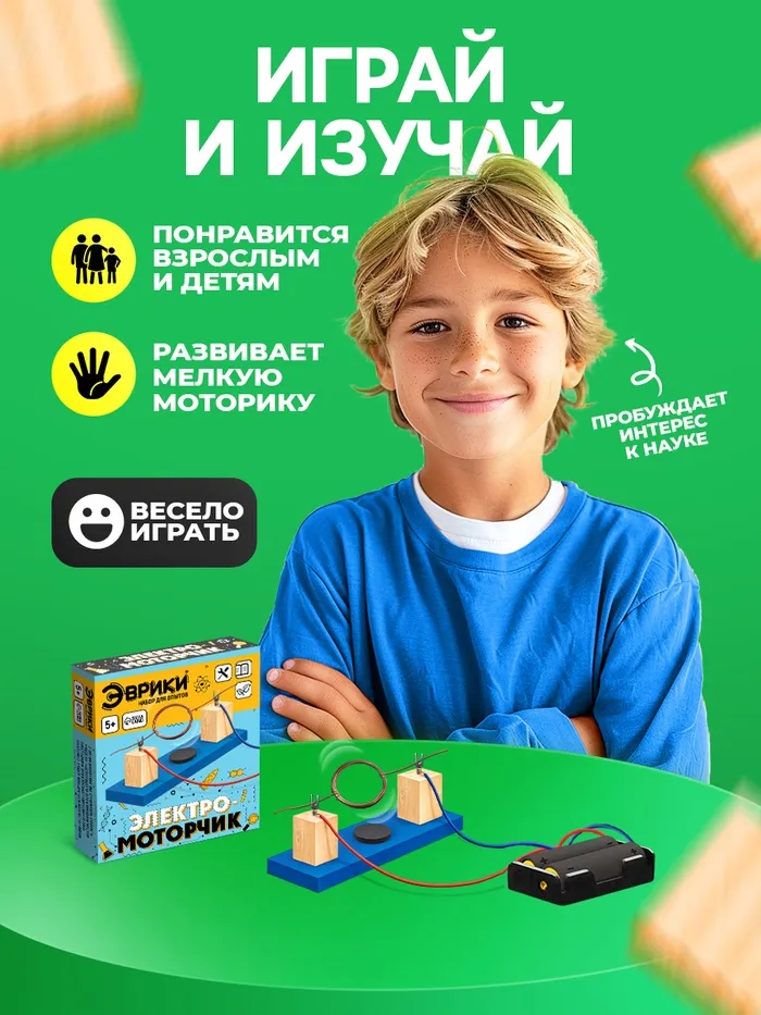Практическое обучение: Набор для опытов «Электромоторчик» развивает техническое мышление, знакомит с физическими законами и учит основам работы с электронными компонентами. Это идеальный способ пробудить интерес к технике у детей от 5 лет. Подарите юному исследователю возможность создать работающее устройство и понять принципы его действия!