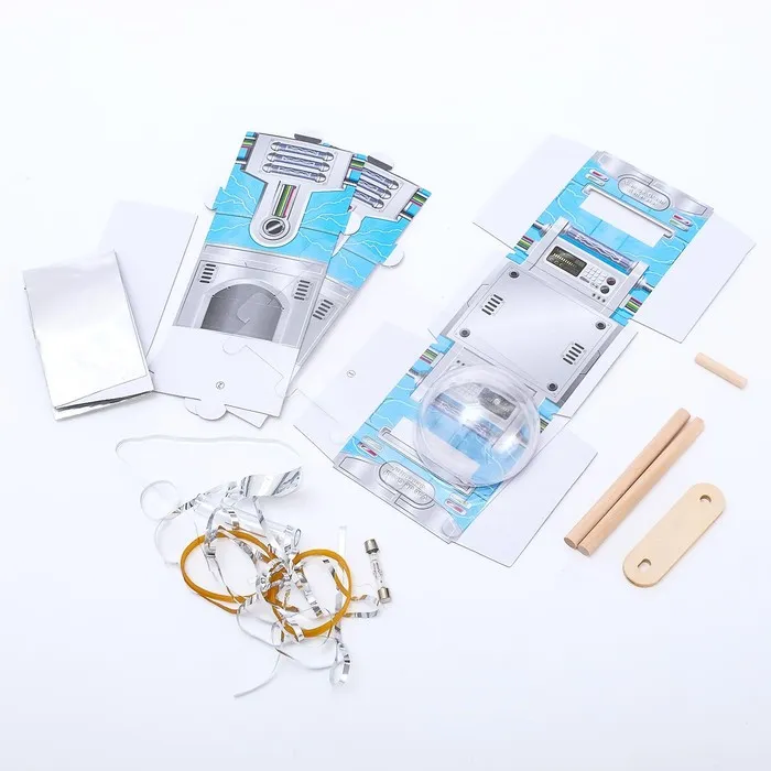 Сконструируйте генератор высокого напряжения и проведите эксперимент. Устройство вырабатывает статическое электричество.
