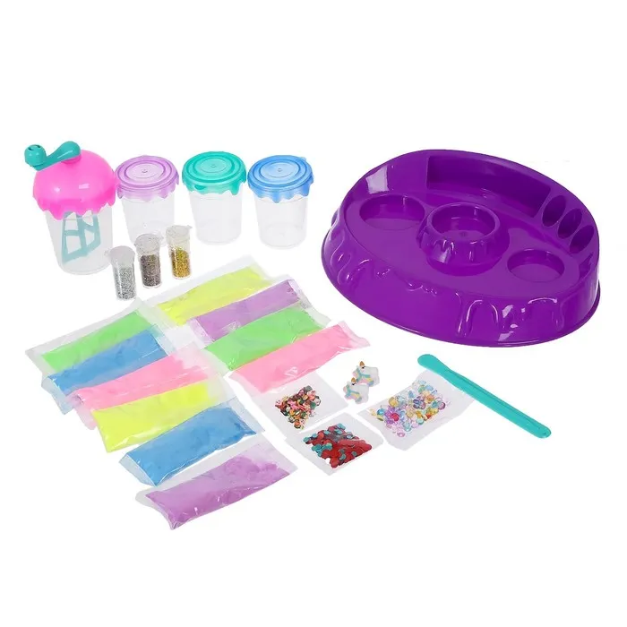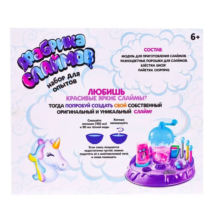 С этим набором ребёнок сможет попробовать себя в роли настоящего химика и создать слаймы разных видов: воздушные, тянущиеся, хрустящие или пушистые. А добавляя блёстки, красители и другие компоненты, он получит уникальный результат каждый раз!
