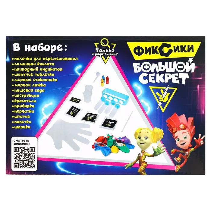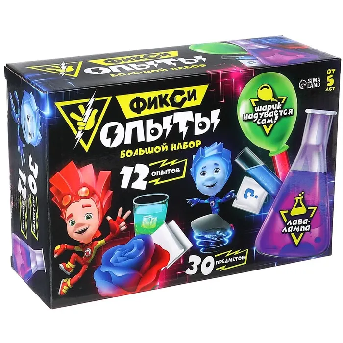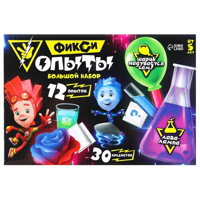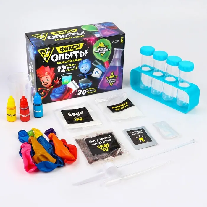 Набор «Фикси опыты. Большой набор» станет отличным выбором для увлекательных занятий дома. Юные исследователи смогут провести 12 интересных экспериментов вместе с героями любимого мультфильма — Файером и Ноликом. Этот набор подходит детям от 5 лет, помогая развивать любознательность и исследовательские навыки в игровой форме.