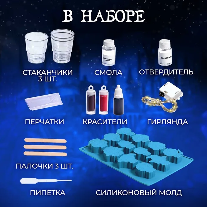 Набор для опытов «Гирлянда волшебника» — это сочетание научного подхода и праздничного настроения. Такой подарок поможет ребёнку скрасить ожидание Нового года, а также позволит создать своё новогоднее украшение из эпоксидной смолы.