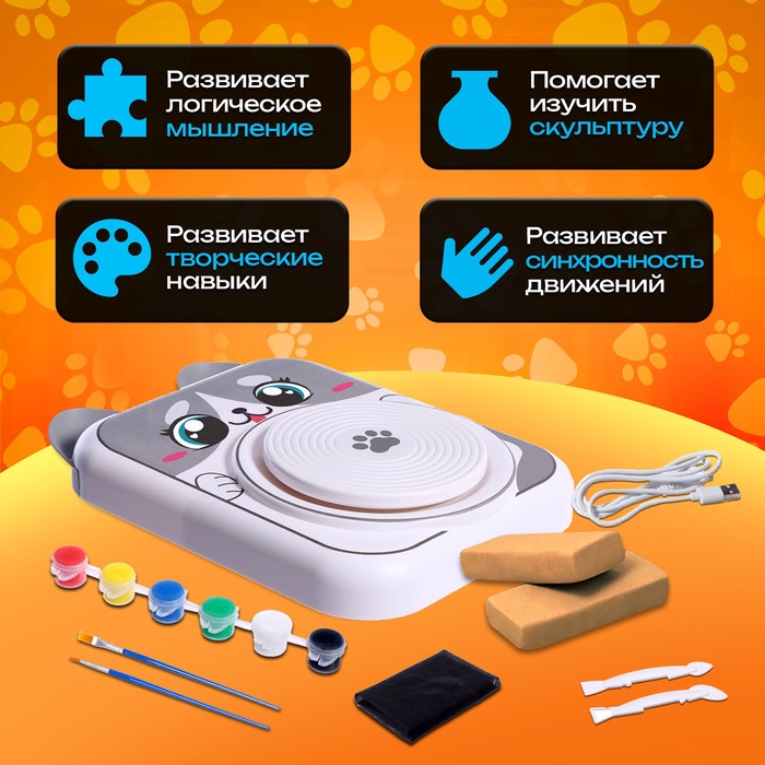 Набор для опытов «Гончарный круг» поможет малышам от 5 лет открыть мир искусства керамики. Необычайно увлекательный и познавательный процесс изготовления керамических изделий понравится взрослым и детям.