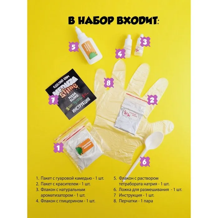 Твори и экспериментируй! Набор содержит все необходимое, чтобы создать свой собственный уникальный слайм.