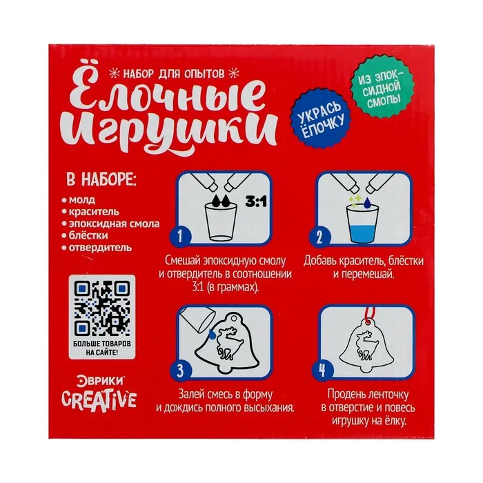 Набор для опытов «Ёлочные игрушки» — это сочетание научного подхода и праздничного настроения. Такой подарок поможет ребёнку скрасить ожидание Нового года, а также позволит создать своё новогоднее украшение из эпоксидной смолы.