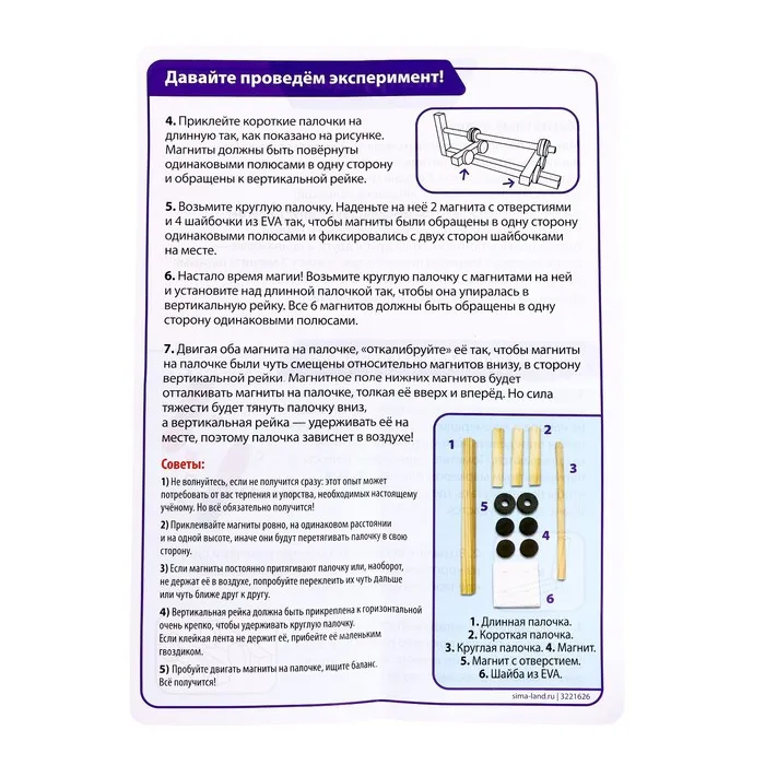 Соберите конструкцию, разместите магниты и запустите эксперимент. Секрет в силе магнитного поля: правильно расположенные магниты заставляют объекты левитировать, словно парящие в невесомости. Это не просто игрушка, а наглядный пример научных законов!