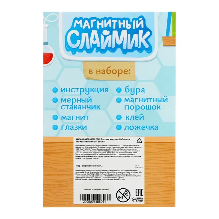 Набор для опытов предназначен для детей старше 5 лет. Дети должны проводить опыты только под присмотром взрослых.