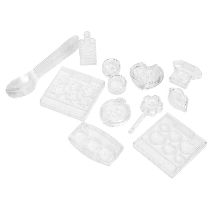 - Добавьте ½ ложки прозрачного основного материала в каждую форму.