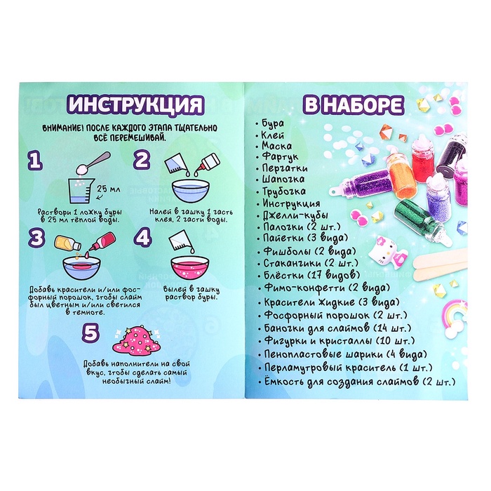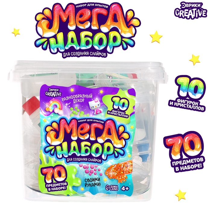 Набор для опытов «Меганабор для создания слаймов», своими руками, 10 фигурок и кристаллов — Характеристики